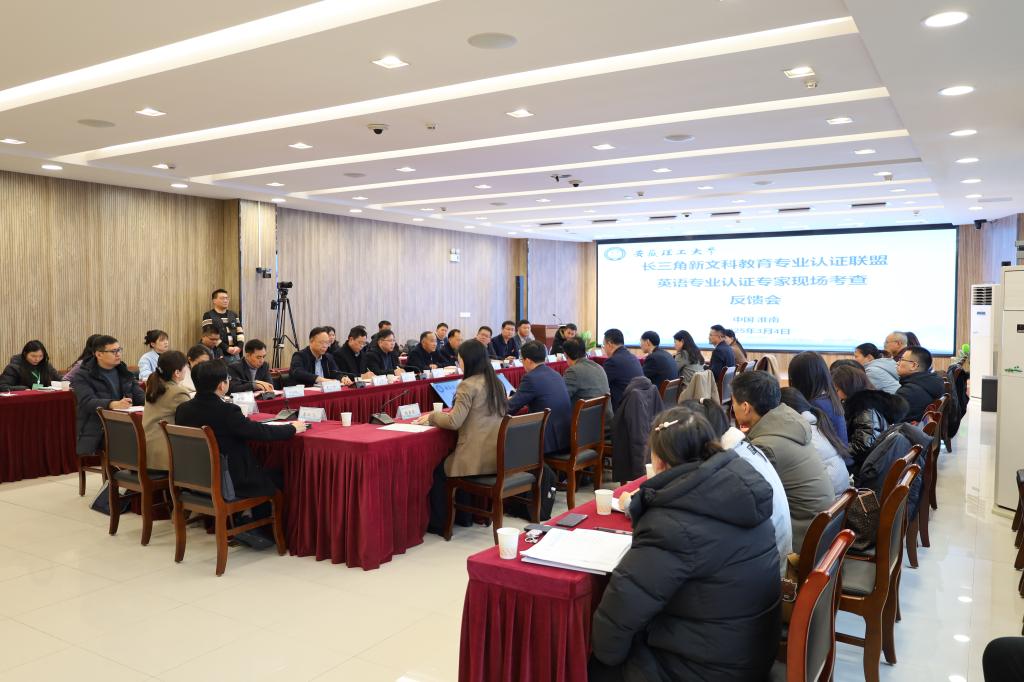 3月2日至4日,长三角新文科教育专业认证联盟对我校英语专业开展专业认证现场考查工作。本次专业认证现场考查专家组由哈尔滨商业大学项义军教授担任组长,专家组成员包括常州大学陈颖教授、浙大城市学院卢卫中教授、宁波大学王明教授、华东师范大学陈俊松教授和杭州得贝工艺品有限公司王敏总经理,上海工程技术大学杨亚莉老师担任项目管理员。校党委常委、副校长张平松参加了专家组见面会、专家意见反馈会。