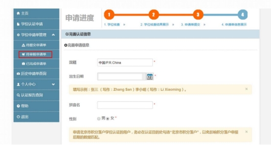 5.进入页面后,填写相关信息,按步骤提示上传附件,提交申请。