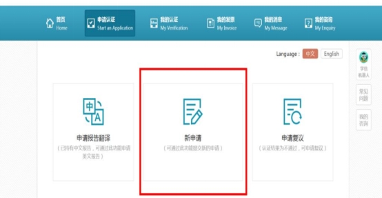 5.点击“申请认证—新申请”,选择是否为本人办理